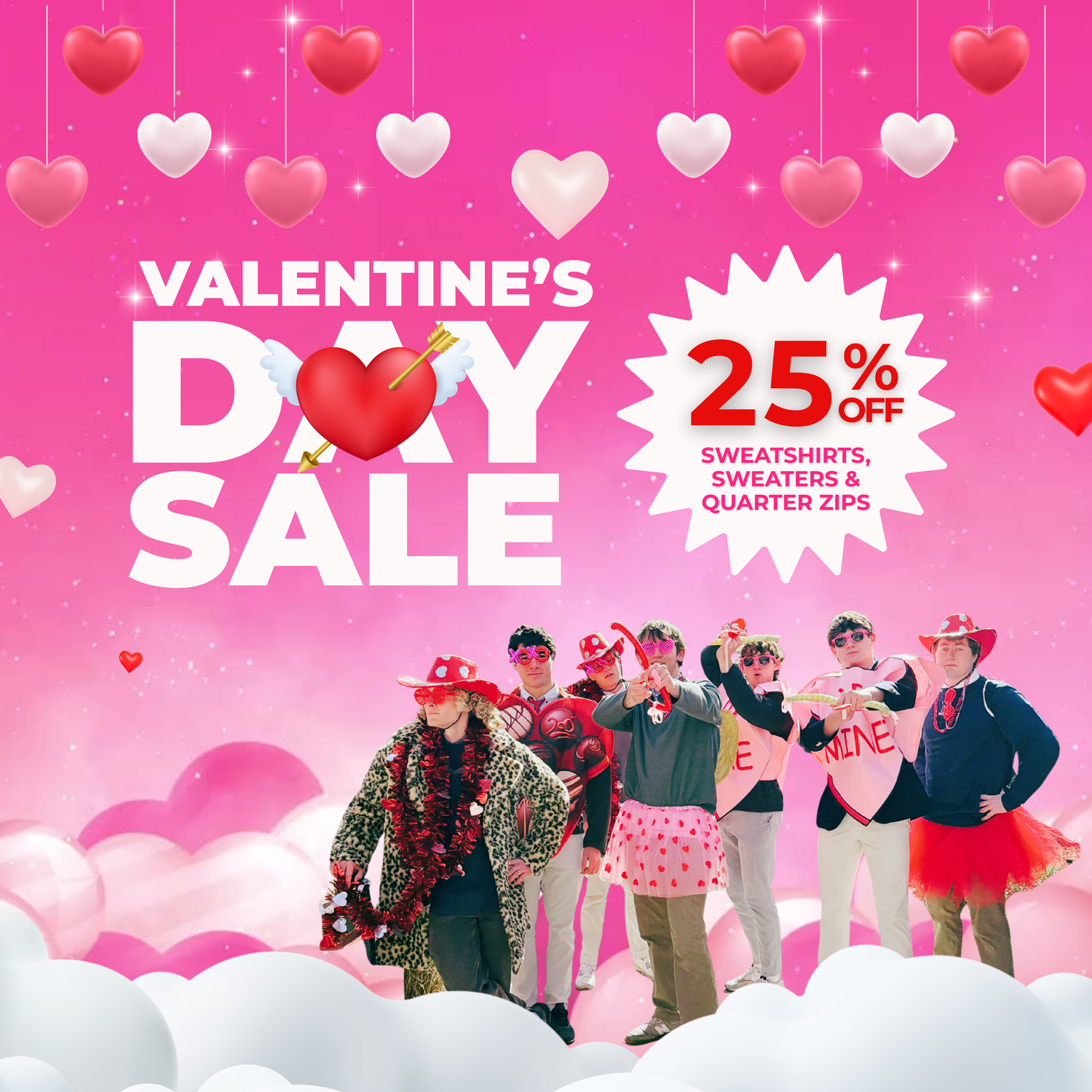 Our annual Valentine's Sale is here and we are spreading the LOVE! Enjoy 25% OFF all sweatshirts, sweaters and quarterzips - including our best sellers! Sale ends Monday, February 16th at midnight. (Automatic discount applied at checkout.)