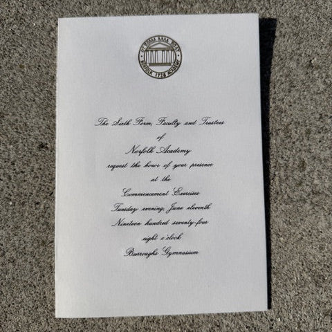 Mark commencement with a formal announcement designed in keeping with the longstanding tradition of Norfolk Academy.