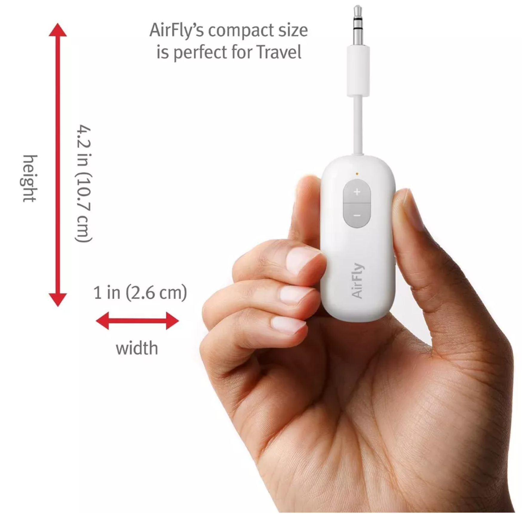 Plug AirFly into any device with a standard headphone jack to listen to audio wirelessly.