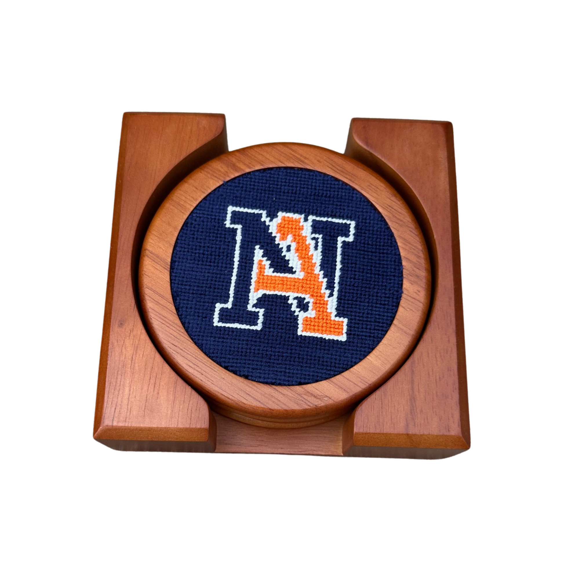 Smathers and Branson 100% hand-stitched Coaster Sets combined our signature needlepoint and chestnut colored wood. Packaged in sets of four within a wooden holder, our needlepoint coasters are a great addition to any coffee or dining room table!